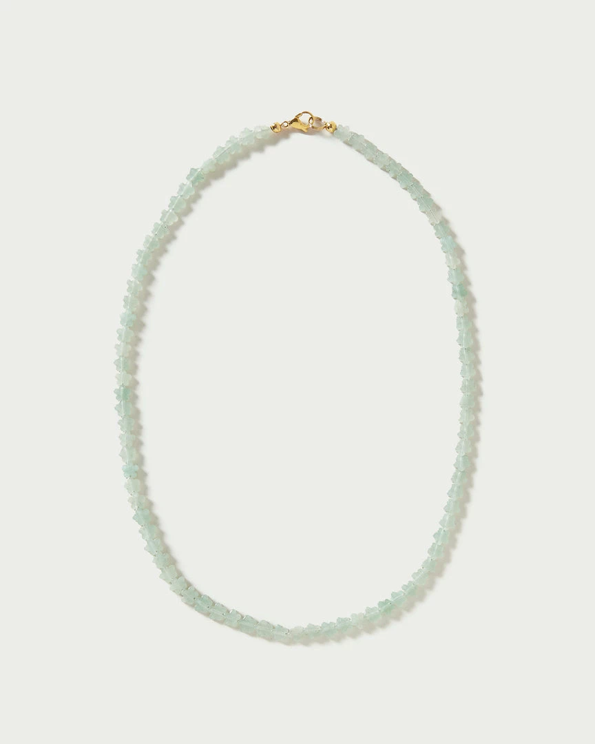 Flower beaded stone necklace in jade green aventurine stones. Lobster clasp closure.