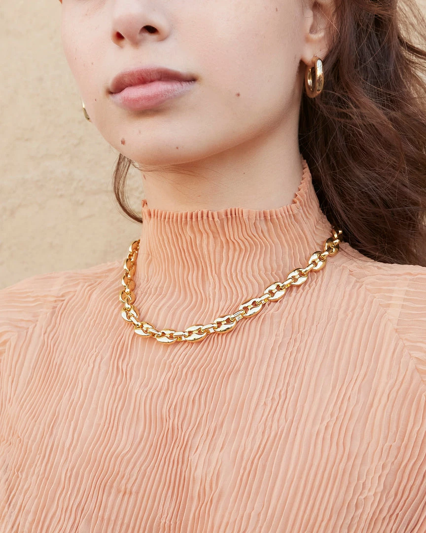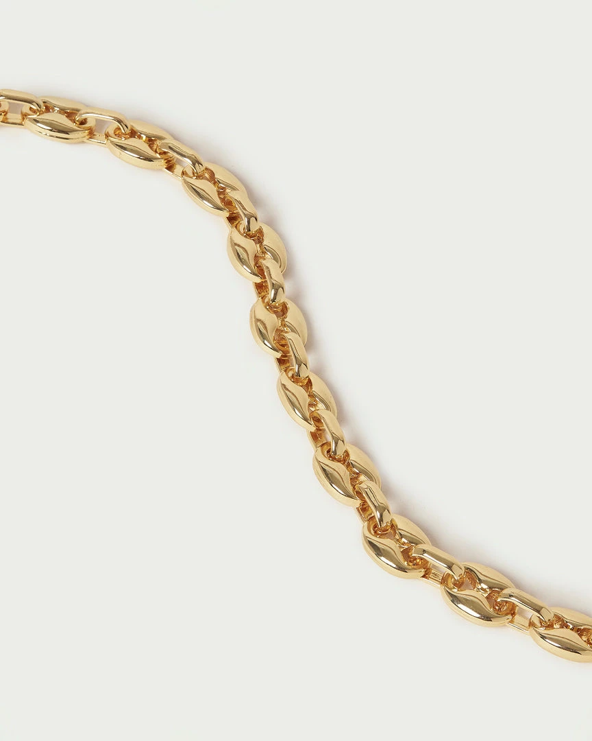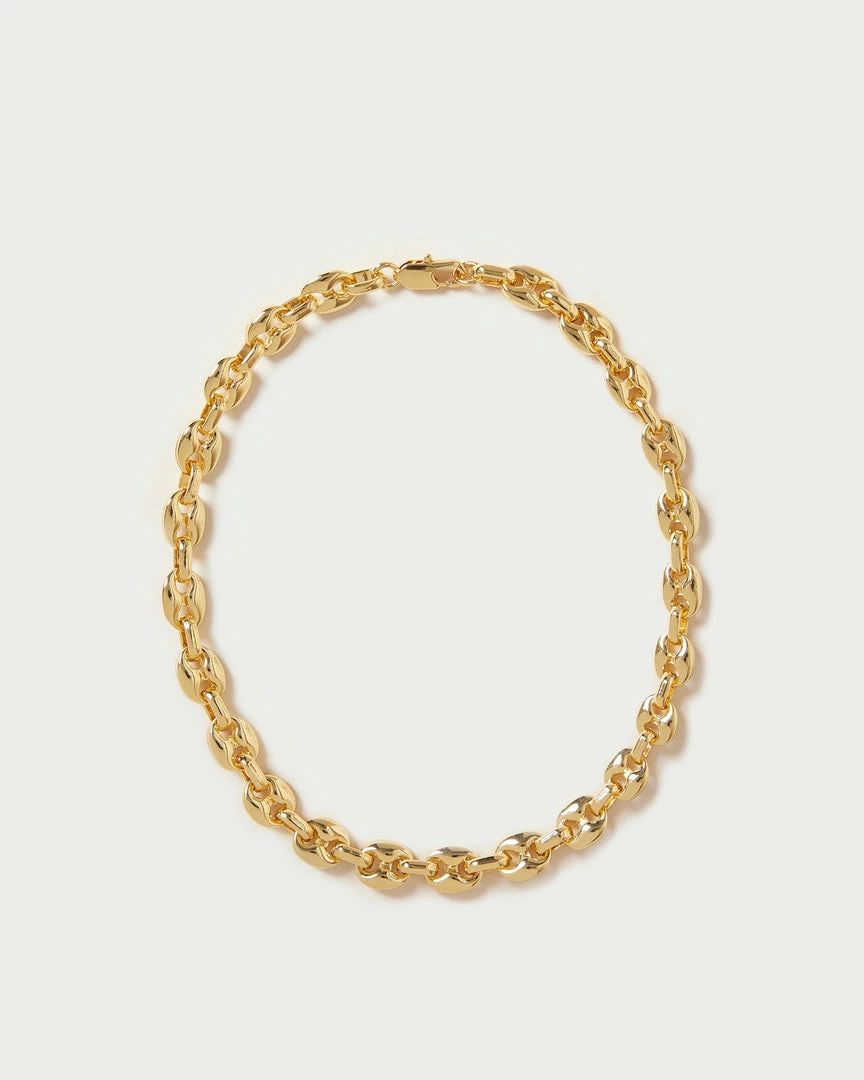 Mariner chain link necklace in gold-plated brass with lobster clasp closure.