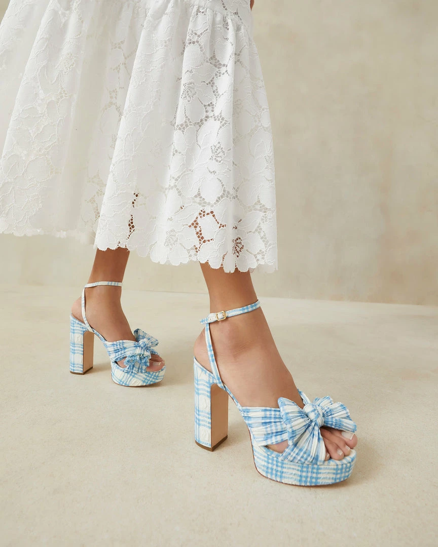 Loeffler Randall Natalia Blue Plaid Platform Bow Heel