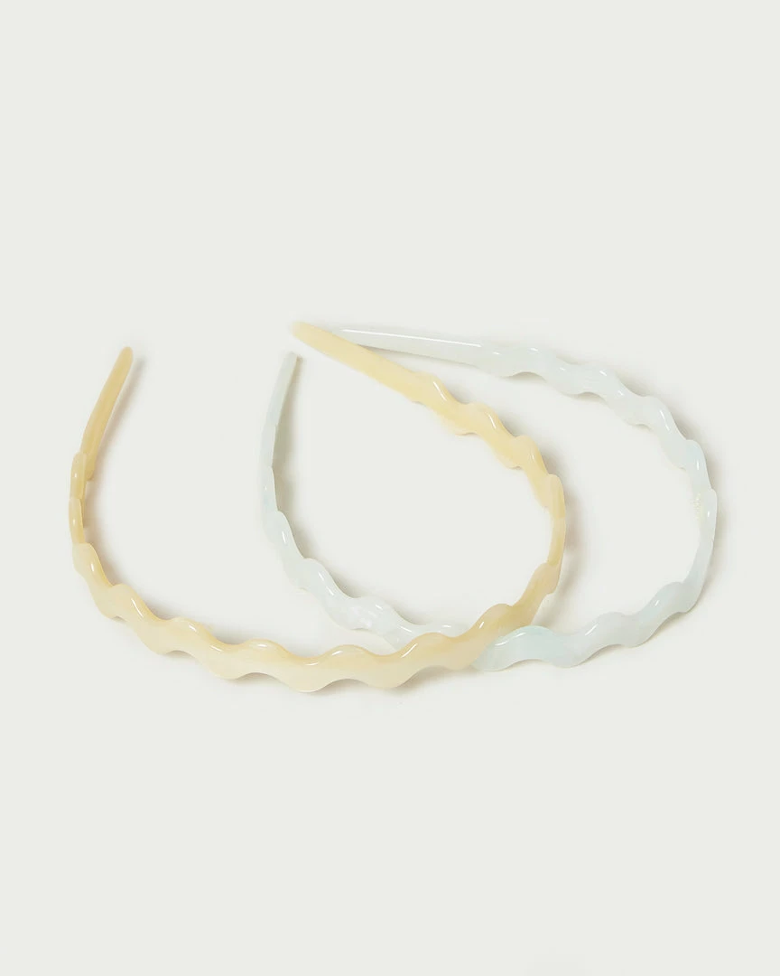 Set of two wavy resin headbands in pale yellow and jade green.