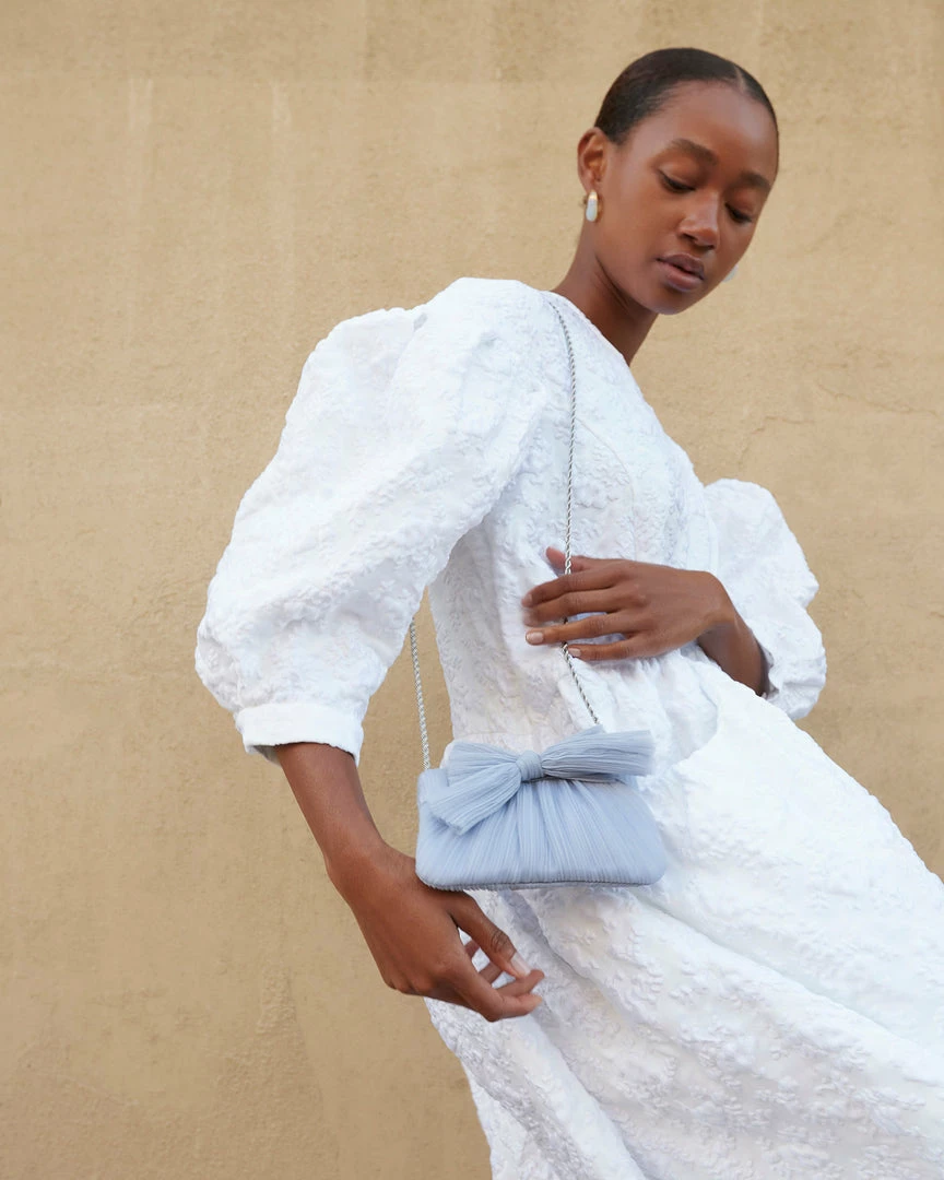 Loeffler Randall Pleats Rochelle Blue Mini Bow Clutch