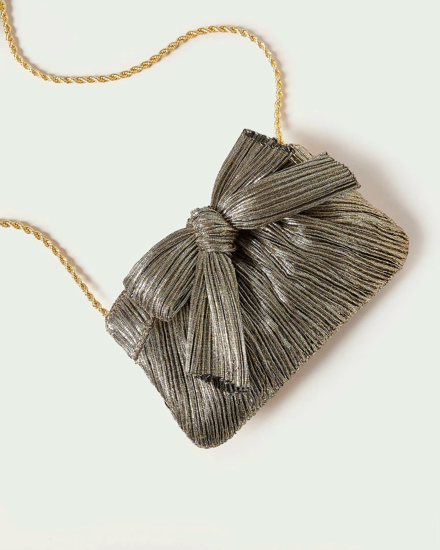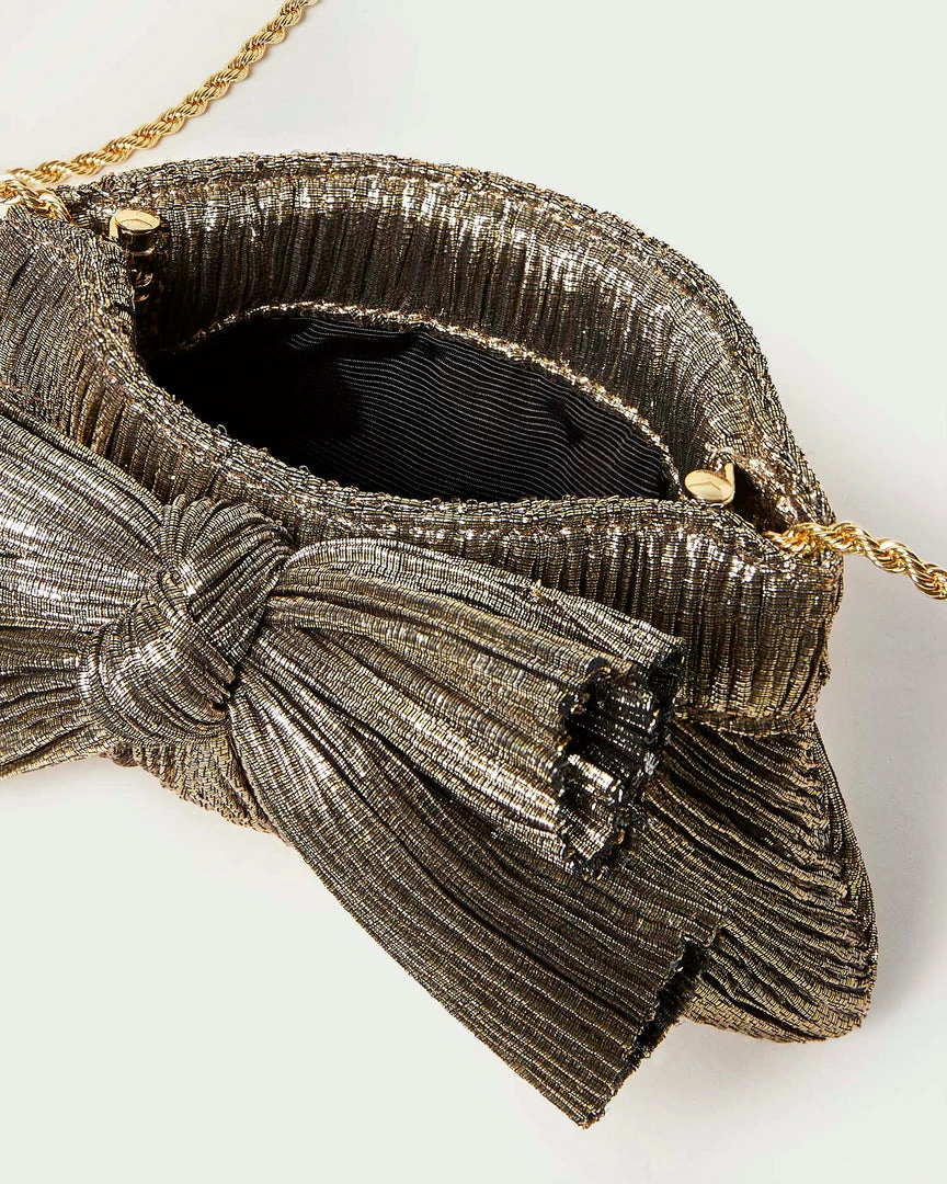 Loeffler Randall Rochelle Gold Mini Bow Clutch Pleats
